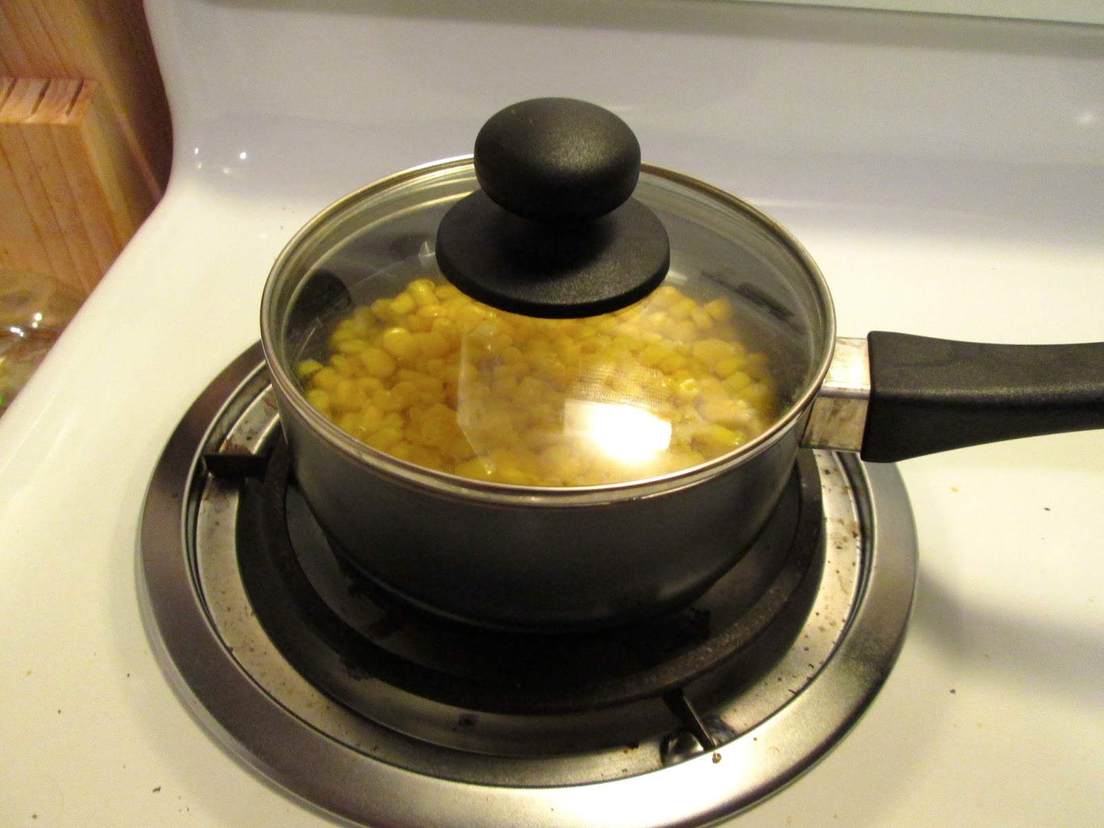 Make corn to package directions. Ignore my dirty stove, please and thank you.